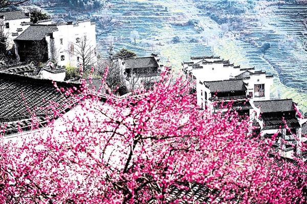 近日,随着气温回暖,江西婺源迎来赏花季,花海层叠掩映在白墙黛瓦间,吸引游客前来踏青赏花,享受美好春光。