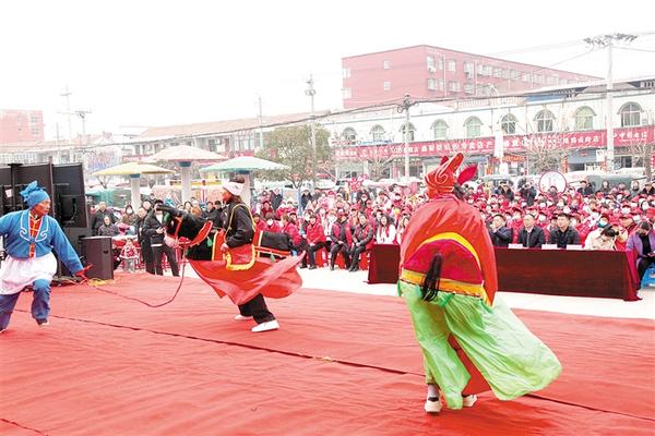 黄寨镇日前召开“黄寨大嫂”千人胡同长“微网格”治理推进会暨“三八”妇女节庆祝表彰大会。活动安排了盘鼓、舞狮、抖驴等表演,并对有突出贡献的“黄寨大嫂”进行了表彰。图为活动现场。