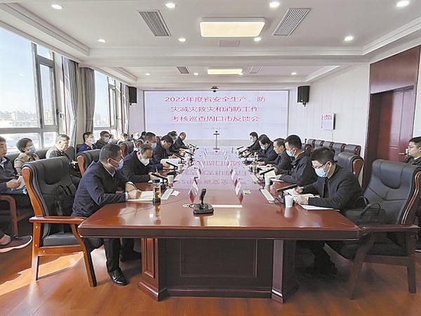 本报讯 (记者 王凯 文/图) 3月13日,我市召开2022年度安全生产、防灾减灾救灾和消防工作考核巡查反馈会。省安委会第一考核巡查组专题反馈有关周口市安全生产、防灾减灾救灾和消防工作目标考核巡查情况。第一考核巡查组组长、省应急管理厅二级巡视员胡方敏参加会议。会议由市政府办公室副主任杨大卫主持(如图)。