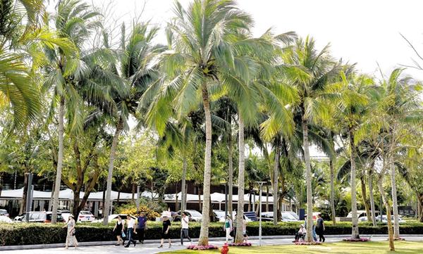 3月15日,游客在博鳌东屿岛旅游度假区游览。