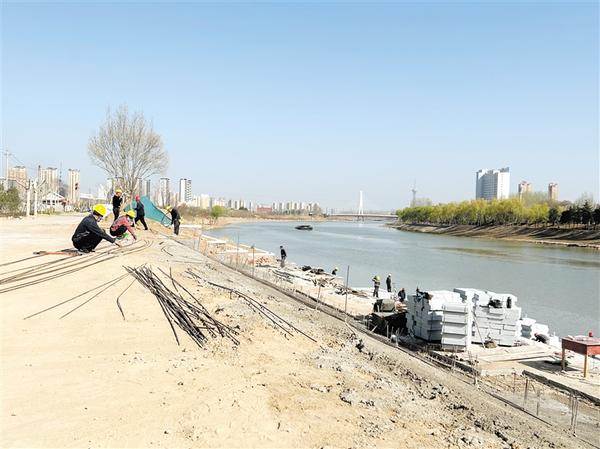 本报讯 (记者 何晴 文/图) 3月14日,我市沙颍河水系城区综合治理建设项目——八一大道至健康路北岸堤防加固工程建设如火如荼:挖掘机和清土运输车正在作业,多名施工人员在八一大道桥向东河堤北岸裁剪钢筋……