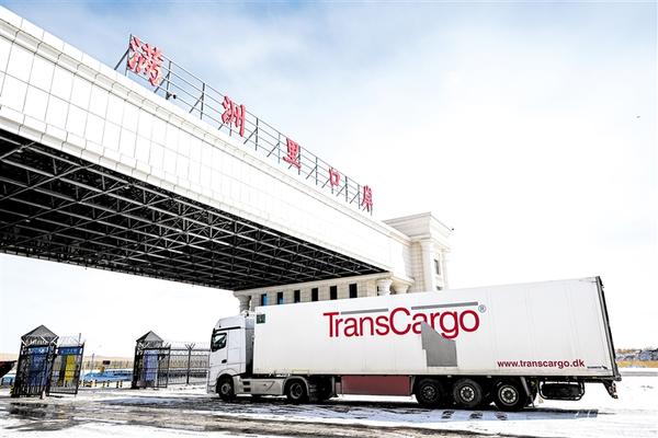 3月15日在满洲里公路口岸拍摄的出境货车。