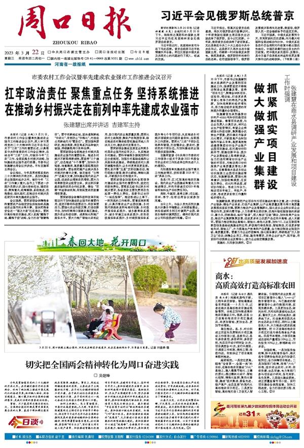 张建慧强调,要坚持把产业项目作为项目建设的重中之重,进一步完备产业链条、健全产业体系、打造产业集群,以产业高质量发展为周口高质量发展提供坚实支撑。要聚力推动产业发展集群化,强化龙头企业和头部企业带动作用,发挥内需市场、人力资源等比较优势,找准补链延链强链的突破口、着力点,明晰路径、绘好“链谱”,深入推动“五链”耦合,加快培育产业生态,推动产业集群集聚发展,促进更多本土优质产品迈向中高端、进入关键环。要强力推动制造业高端化、智能化、绿色化发展,加快5G、工业互联网等新型信息基础设施建设和应用,积极推行绿色制造、智能制造,打造更多智能车间、智能工厂,大力提高生产效率和产品质量,全力推动制造业转型升级、高质量发展。要着力为企业纾困解难,强化服务意识,持续推进“万人助万企”活动,保障企业用工、用能、融资等需求,支持企业扩生产、拓市场,用实际行动提振企业发展信心,助力企业稳定健康发展。