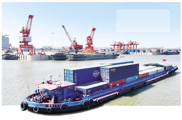 近日,一艘装载周口农产品的集装箱货船从周口中心港码头驶出,这批货物将于45天后到达美国迈阿密港。 记者 宋风 通讯员 赵磊 摄