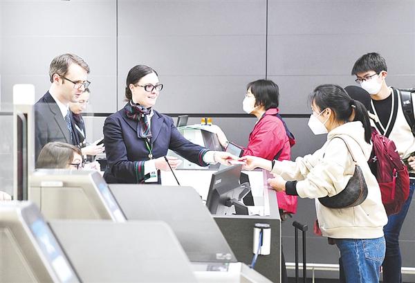 3月27日,在意大利罗马菲乌米奇诺机场,国航罗马直飞北京航班的旅客准备登机。