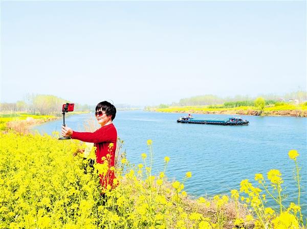 3月30日,春风和煦,地处沈丘县周营镇欧营村沙颍河段南岸,油菜花盛开,吸引不少当地游客前来踏春赏景。