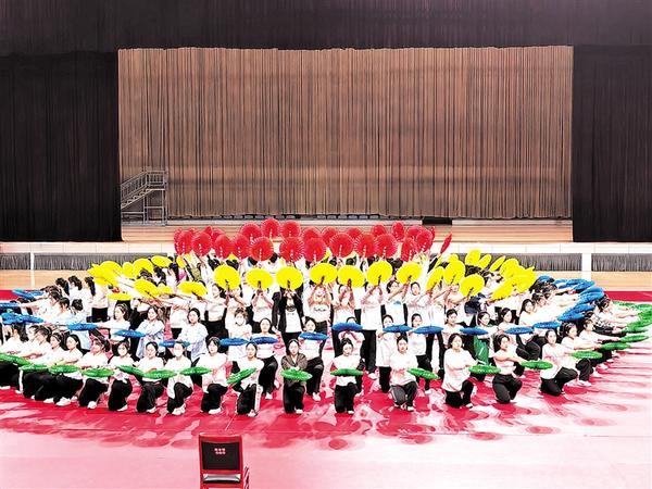 4月1日,在周口市体育馆内,河南科技职业大学的200多名学生正在导演和老师的带领下排练第九届全省民族运动会开幕式节目。能参加第九届全省民族运动会开幕式的演出,对于学生们来说,无疑是一次珍贵的人生经历。