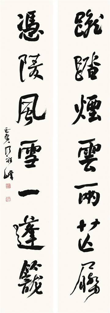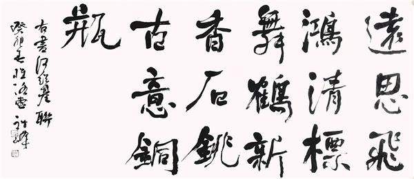 祥峰的书法,不管是写汉隶还是写《十七帖》,抑或是苏东坡、倪瓒,无不形神俱备,得其七八分妙处,而且都能时出新意,以绍古人之心。近年来,国展明清风大起,我建议他写写何绍基的作品,也算是“艺术返祖”。他临了500多张何绍基的对联,挑了50件,是为一辑。通过这些临作,足见其才情天分。龚自珍说“十万狂花如梦寐”,独坐春风,狂花如潮,读“小何”之作,想见“老何”之风度,两者所去不远,亦复有曾国藩之叹!①8