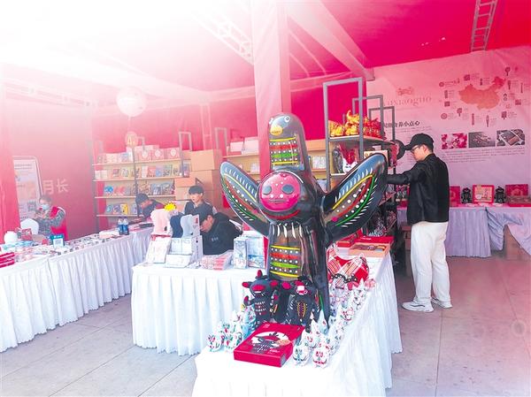 除了图书,“祈愿限定版”的伏羲书展印章和贴纸成为颇受欢迎的“图书身份证”,印有鲁迅名言的文具笔袋引得大人小孩哈哈大笑,去太昊陵烧了香后来到书展门口的“盖章打卡”处排队成为新项目,带一个以泥泥狗为原型缝制的可爱布偶回家的孩子们一脸“我有好东西”的自豪……文创的新意,给赶庙会的人们带来不一样的文化新风。“数百年旧家无非积德,第一件好事还是读书。”“要是知道你爱读书,人祖爷该多欣慰啊!”“捧着手机光阴短,走进阅读岁月长 。”……整个展厅内外或文气满满、或网感十足的标语令首届河南周口伏羲书展成为一处活化的文化空间,引得香客、游客、书友争相拍照发朋友圈。
