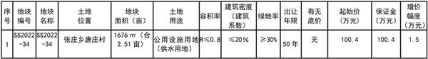 五、拍卖时间及网址 拍卖报价时间:SS2023-34号地块:2023年5月8日9时。拍卖网址:周口公共资源交易系统(网址:http://jyzx.zhoukou.gov.cn)。