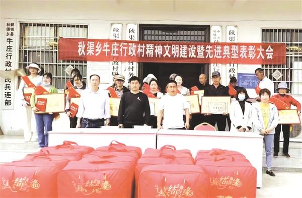 4月12日,郸城县秋渠乡牛庄行政村表彰好党员、好妯娌、好儿媳、好婆婆、致富能手等。据了解,该村旨在通过表彰先进典型,不断激发群众内生动力,有效赋能乡村振兴。记者 徐松 摄