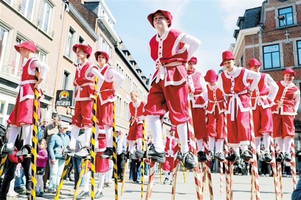 4月15日,演员在比利时那慕尔市传统民俗日活动上表演。