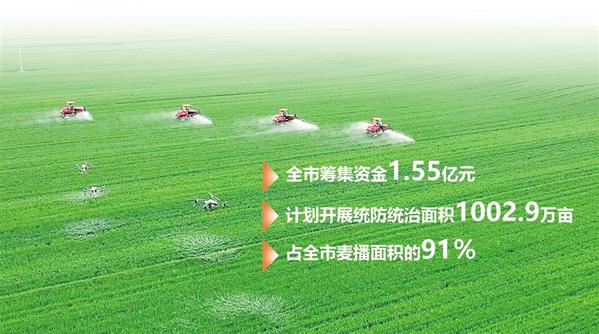 截至目前,我市已开展小麦重大病虫害统防统治230多万亩,预计一周内可基本防治一遍。