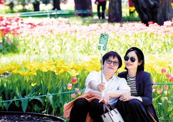 目前,北京中山公园的郁金香花开正艳。据了解,今年,北京中山公园布置了六个主题景区,展出85个品种近20万株郁金香及洋水仙、葡萄风信子等球根花卉。