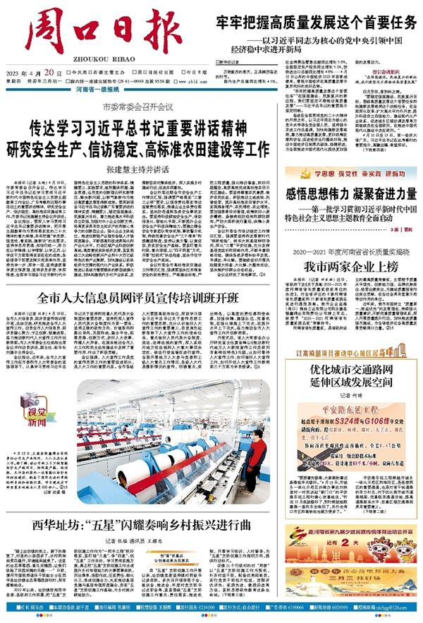 近年来,我市牢固树立“质量第一、效益优先”的发展理念,持续强化质量意识,不断完善质量管理体系,深入开展质量提升行动,加快推进质量强市建设,为全省经济社会高质量发展贡献周口力量。②18