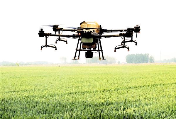 4月19日10时许,15台大型无人机从临港开发区各行政村陆续起飞,按照当地农业部门计划,将在两天内完成对全区近5万亩麦田的“一喷三防”作业。 据了解,“一喷三防”是促进小麦稳产增产的一项关键技术,将杀菌剂、杀虫剂、植物生长调节剂、叶面肥等混配,通过一次喷药,完成对赤霉病、条锈病、蚜虫的防治及叶面肥的喷洒,达到增加小麦千粒重的效果,为丰收再上一道“保险”。记者 宋风 摄