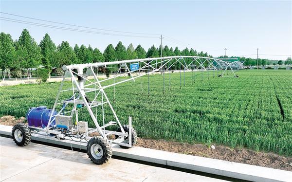 4月20日,记者在河南周口国家农高区郸城县高标准农田示范区看到,中心支轴式喷灌、平行行走式喷灌、卷轴式喷灌、固定式喷灌等水肥一体化喷灌设施护卫着高标准农田,确保浇水、打药、施肥及时高效。②7 记者 徐松 摄