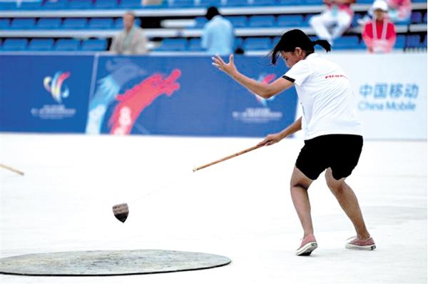 蹴球,原称“踢石球”,是从我国古代蹴鞠运动发展而来,在满族、蒙古族、回族等民族中较为流行。在1999年北京举行的第六届全国少数民族传统体育运动会上,蹴球被列为正式竞赛项目。