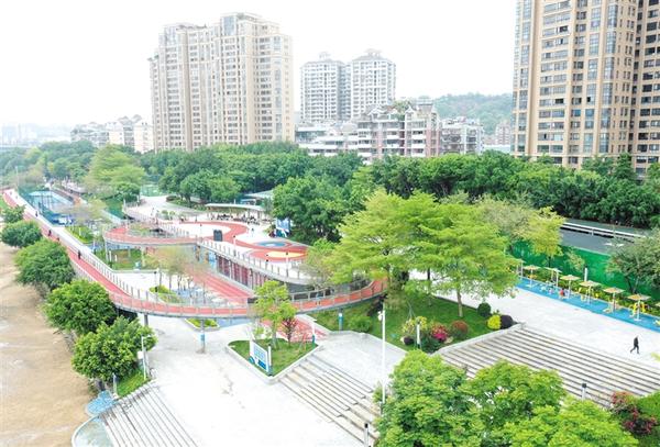 4月24日拍摄的福州市鼓楼区西河智慧体育公园内智慧跑道、智慧健身器材及健身驿站等(无人机照片)。新华社记者 林善传 摄