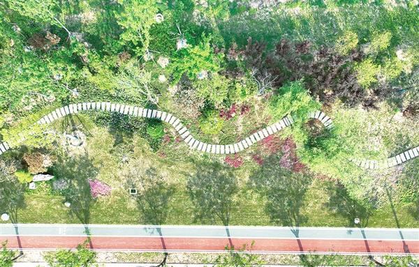 近日,鹿邑东迎宾大道两侧满目青翠,鲜花簇拥,置身其中,一步一景。据悉,鹿邑东迎宾大道南起紫气大道东段,北至盐洛高速老子故里站,是展示鹿邑城市品质和地方形象的重要窗口之一,也是该县实施道路绿化景观提升工程打造的迎宾长廊、印象景廊、交通绿廊。图为东迎宾大道街角公园俯瞰图。
