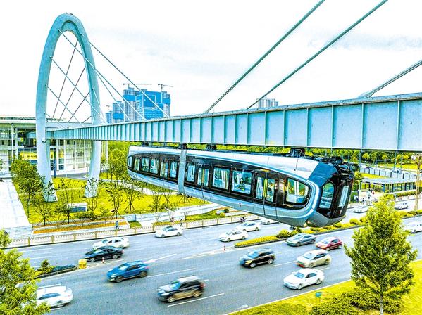 空轨,专业名称为“悬挂式单轨列车”,是一种新型中低运量轨道交通制式。空轨列车车体悬挂于轨道梁下方凌空“飞行”,被称为“空中列车”。它具有不占用地面路权、环境适应性强等优点,兼具通勤和观光功能。