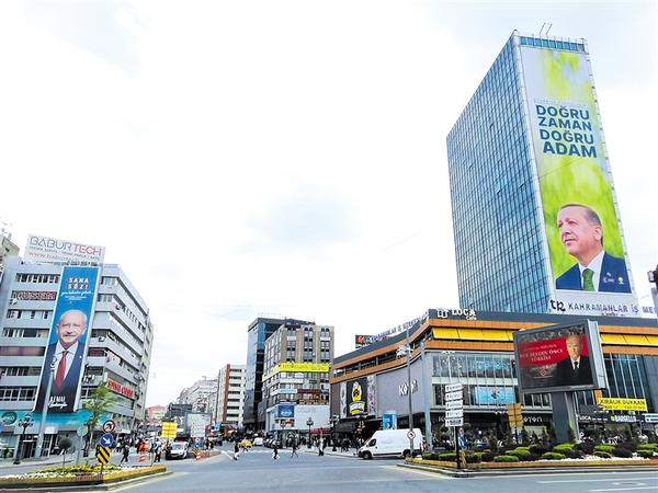 这是5月11日在土耳其安卡拉拍摄的埃尔多安(右)和凯末尔·克勒奇达尔奥卢的竞选海报(手机拍摄)。 土耳其将于14日举行总统和议会选举。选前民调显示,由6个反对党组成的“民族联盟”阵营候选人凯末尔·克勒奇达尔奥卢与现任总统埃尔多安支持率接近。分析人士指出,在2014年和2018年的总统选举中,埃尔多安均在首轮投票中以超过50%的得票率直接当选。但在此次总统选举中,因反对党联盟阵容强大,加之国内经济状况不佳等原因,埃尔多安寻求连任面临严峻挑战。 新华社记者 李振北 摄
