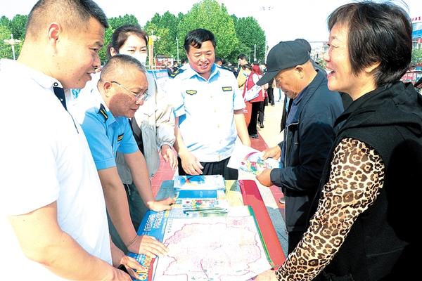 为进一步增强群众的防灾减灾意识、提高群众的自救能力,5月12日上午,太康县自然资源局配合县应急管理局、县气象局、县水利局、县消防救援大队等单位在县人民广场开展以“防范灾害风险、护航高质量发展”为主题的宣传教育活动。图为工作人员向群众讲解防灾减灾知识。