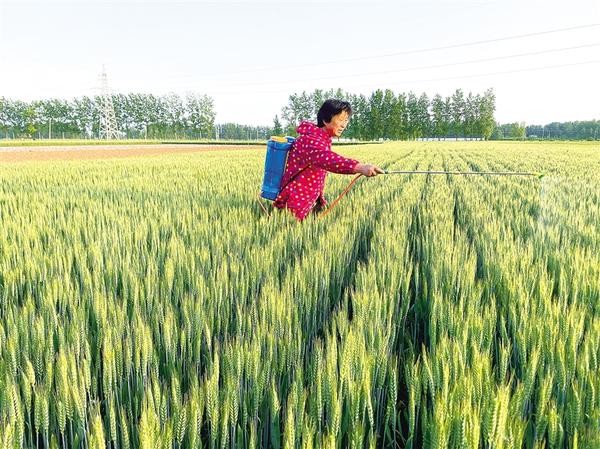 在小麦中后期管理中,我市实行“统防统治+群防群治”相结合的办法,对大块麦田实行政府统一购买农药、统一购买社会化服务等形式,推行专业化统防统治;对小块地组织群众使用小型喷施机械进行人工作业群防群治。图为昨日商水县平店乡程岗村群众在对零星地块小麦进行“一喷三防”。