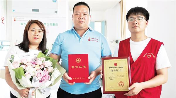 5月11日至16日,36岁的退役军人刘全成(中)在项城市红十字会工作人员和家属的陪同下,到河南省人民医院顺利完成了造血干细胞的捐献。据了解,这是项城市首例造血干细胞捐献者。
