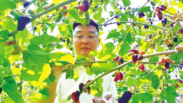 5月13日,西华县首届“全民采摘节”在黄桥乡裴庄村盛大开幕。游客纷纷前来,走入瓜田果园,体验采摘乐趣。图为游客夏先生正在桑椹园采摘桑椹。记者 张猛 摄