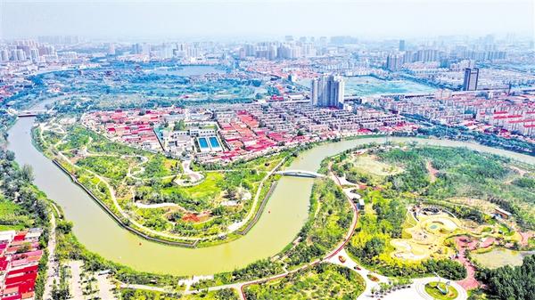 沧州市区境内的京杭大运河河道(5月16日摄)。 沧州市位于河北省东南部,因东临渤海而得名,有着1500余年建州史,文化底蕴丰厚。沧州是一座因运河而兴的城市。宋末元初时,沧州运河沿岸经济繁荣,有“小燕京”之称。作为沧州的母亲河,大运河在这里流经8县(市、区),绵延200余公里,沿途遗迹分布众多,河道保存完好,代表了北方运河原真性。 近年来,沧州市以河为线、以城为珠,线串珠、珠带面,全域统筹大运河文化保护带、生态景观带、全域文化旅游带、乡村振兴产业带建设,使古老母亲河再润沧州。 新华社记者 牟宇 摄