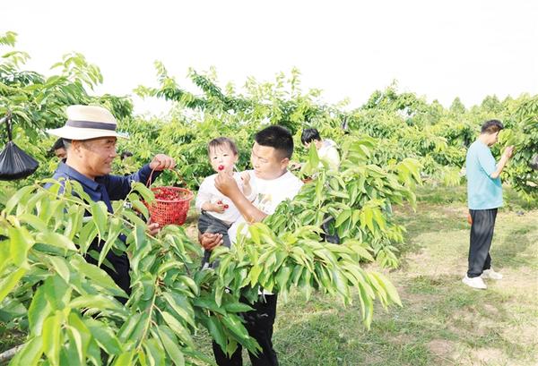 初夏时节,草木葳蕤。在郸城县高标准农田示范区永禾生态园,8600棵车厘子树果实陆续成熟,游客纷至沓来,挎着篮子穿梭在林间,过一把采摘瘾,尝一口鲜果甜。②10 记者 徐松 摄