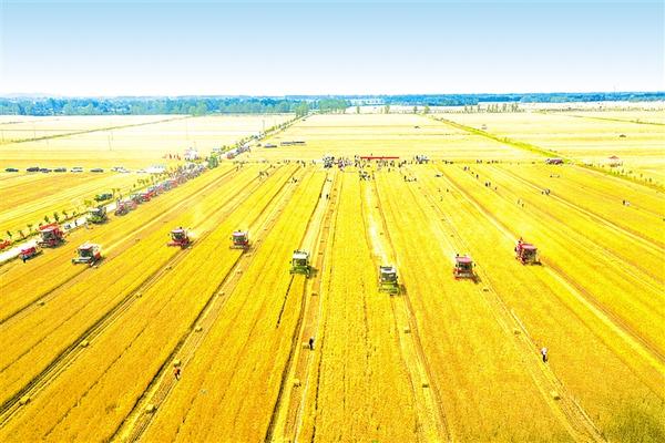 当日,河南省2023年小麦机收减损技能大比武活动在南阳市唐河县举行。据悉,此次比武活动旨在全省机收作业中进一步规范节粮减损操作技能,尽量减少粮食在收割环节的损失。今年“三夏”,河南省计划投入各类农业机械400万台(套),保障夏粮颗粒归仓。新华社记者 张浩然 摄