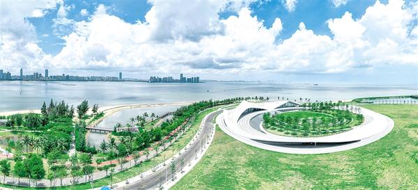 这是5月26日拍摄的海口湾“天空之山”驿站(无人机照片)。 炎炎夏日,海口湾“天空之山”驿站绵延起伏的屋顶在海边蜿蜒,形成一道靓丽的风景线。“天空之山”驿站包含图书馆、咖啡厅、展览区等业态布局,并嵌入艺术和小型演出功能,满足市民游客的精神文化需求。作为海口16个滨海驿站项目之一,“天空之山”驿站启用后成为海口新地标,吸引诸多游客前来打卡。 新华社记者 张丽芸 摄