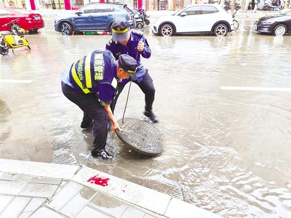 连日来的降水影响了广大市民的生产生活。淮阳区城市管理局闻“汛”而动、逆行冲锋,立即启动防汛应急预案,第一时间吹响防汛应急“集结号”,组织防汛应急抢险队伍紧急投入城区路段、污水泵站、提水闸口等重要点位,及时排查险情,确保城区道路管网通畅、市民群众出行安全。 记者 侯俊豫 摄