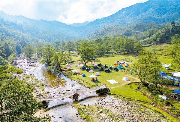 坪河草地景区位于云南省红河州金平县马鞍底乡,一段时间以来,当地成立旅游专业合作社,采用“合作社+村委会+农户”的模式运营,推出以帐篷户外露营为主的旅游模式吸引游客前来游玩,辐射带动景区附近村寨群众增收。新华社记者 陈欣波 摄