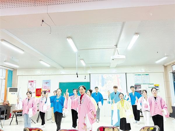 为进一步推动非物质文化遗产保护工作,弘扬中原优秀传统文化,促进豫剧的保护、传承与发展,近日,周口市非物质文化遗产保护中心邀请豫剧名家陈红老师走进周口师范学院讲授豫剧艺术,带领同学们感受豫剧的韵味和魅力。记者 黄佳 摄