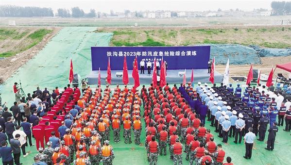 本报讯 (记者 王凯 通讯员 范伟彦 文/图) 5月26日,扶沟县举行2023年防汛应急综合演练。县委常委、常务副县长任松奎,县人大副主任魏军占,副县长王昂,县政协副主席孙春花等现场观摩指导(如图)。