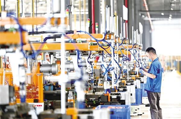 6月2日,工人在柳江区一家空调企业的生产车间内忙碌。