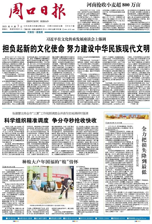 本报讯 (记者 王艳 吴继峰) 6月2日,市委书记张建慧主持召开全市“三夏”工作视频调度会,听取各县(市、区)工作汇报,分析研判气象趋势,不断优化应对举措,对全市夏收夏种工作进行再安排、再部署。他强调,要胸怀“国之大者”,扛稳责任担当,科学精准调度,动员一切力量,争分夺秒抢收小麦,全力保障夏粮应收尽收、颗粒归仓。