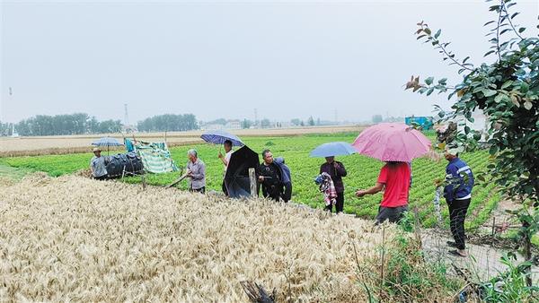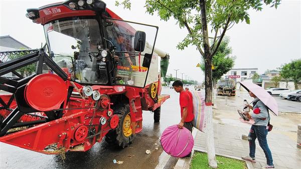 连续收割三天后,天又下起了雨,正在田间忙碌的朱敬超只好停下。查询淮阳区未来几天的天气情况后,与妻子商议,夫妻俩商议后决定启程回家。因为家里的麦子也该收割了,家人已多次打电话催促。