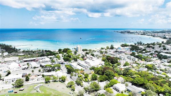 这是5月28日拍摄的巴巴多斯首都布里奇敦的海岸线风光(无人机照片)。