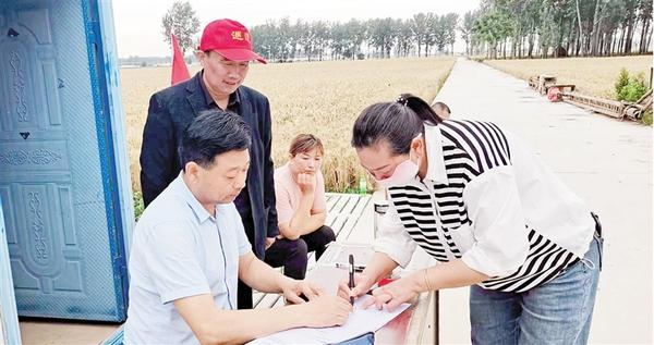 “三夏”农忙时节,太康县司法局基层司法所司法行政干警在夏粮抢收、抢种现场调解耕地权属边界纠纷,让群众安心、安全忙“三夏”。记者 陈永团 通讯员 王润生 摄