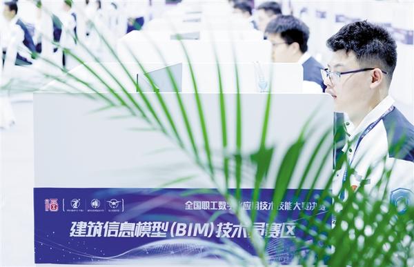 6月7日,参赛选手在建筑信息模型(BIM)技术员项目的比赛中。
