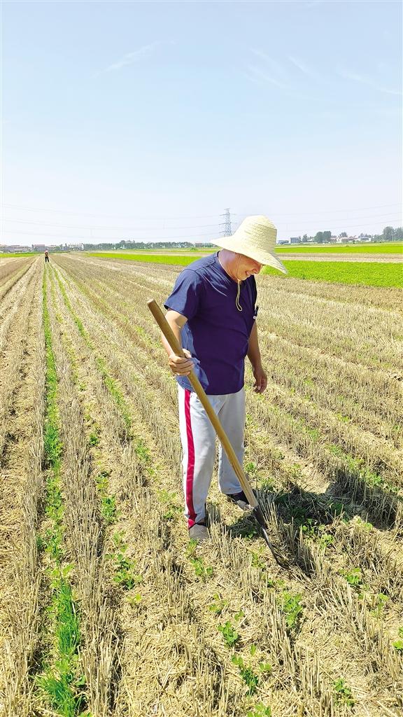 图5: 6月8日,淮阳区王店街道办事处周庄村民正在麦茬花生地里松土。