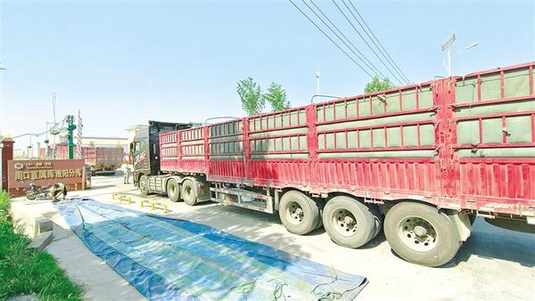 图7: 6月8日,一辆装满小麦的货车,正在中储粮周口直属库淮阳分库门前等待检测入库。