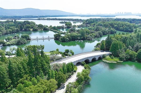 6月9日拍摄的常熟尚湖风景区景色(无人机照片)。