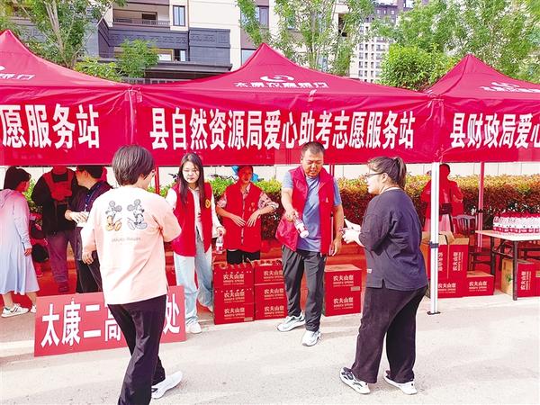 高考期间,县自然资源局在太康一高南门设立志愿服务站,为考生提供矿泉水等物品。同时,积极协助交警、城管等执法人员维护考点周边秩序,为考生创造良好的考试环境。 记者 张洪涛 通讯员 王立平 摄