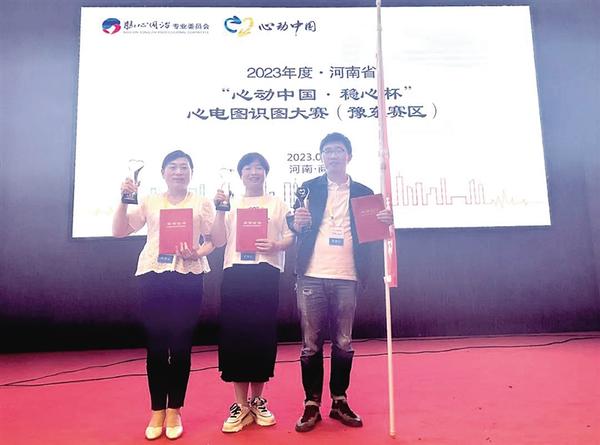 本报讯 (记者 徐松 通讯员 张海鹰 文/图) 6月4日,2023年度河南省“心动中国·稳心杯”心电图识图大赛(豫东赛区)在商丘揭晓,由郸城县中心医院派出的心电图室主任杨艳梅、医师胡大龙和心内科二病区主任张彩红组成的代表队,以初赛第一、决赛第三的成绩荣获二等奖(如图)。