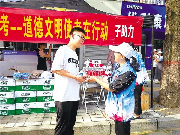 “收到志愿者送的水,我感觉信心又增加了。”考生徐悦悦说,这一温馨举动让她缓解了紧张的情绪。